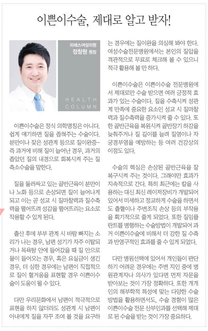 언론보도 :: 이쁜이수술 소음순수술 요실금수술 전문 리에스여성의원