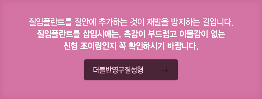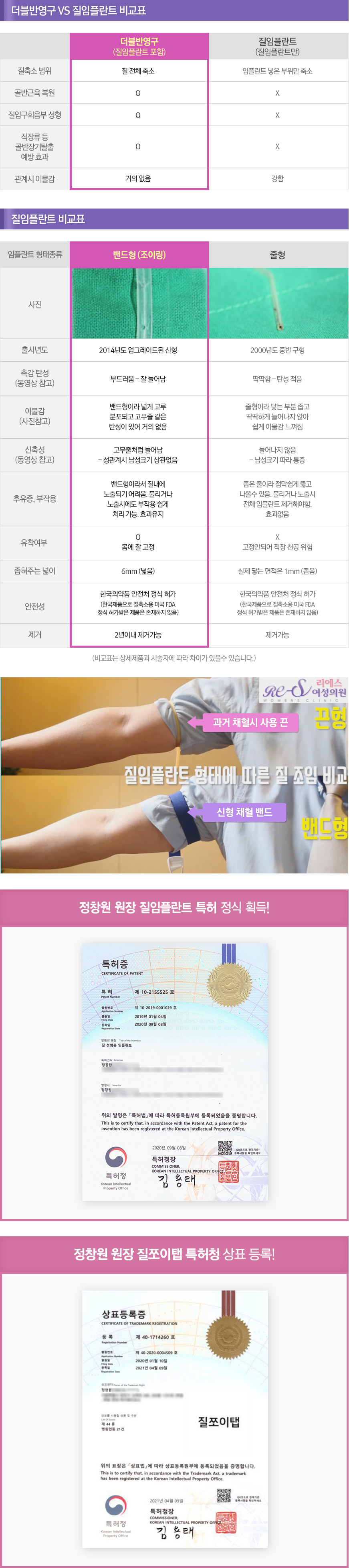 - 질염, 자궁경부염,골반염 예방 효과 : 질의 길이를 늘리고 굴절된 정상축을 회복함으로써 항문과의 거리를 멀게 하여 질염, 자궁경부염 등의 발생빈도를 낮출 수 있습니다.